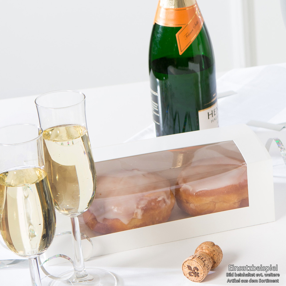 Die Patisserie-Boxen mit Sichtfenster sind weiß und unbedruckt. Eine individuelle Bedruckung bieten wir unseren gewerblichen Kunden gerne auf Anfrage separat an.