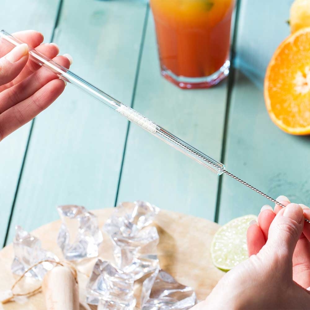 - GLAS STROHHALM SET GERADE umfaßt 6 Stück Glasrohre Länge 15cm Außen- Ø 0,8cm und 1 Strohhalme Bürste umweltfreundlich mit Borsten aus Baumwolle für Hygiene und Sauberkeit Ihrer Glastrinkhalme