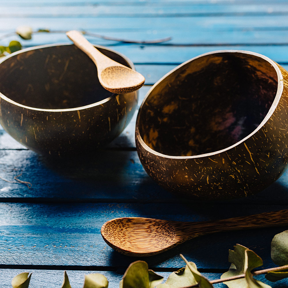 - 100% NATÜRLICH - Unsere Kokosnuss-Schale ist ein reines Naturprodukt. Sie bestehen zu 100% aus dem Holz der Kokosnuss und werden mit Kokosöl poliert - Eine tolle plastikfreie Alternative