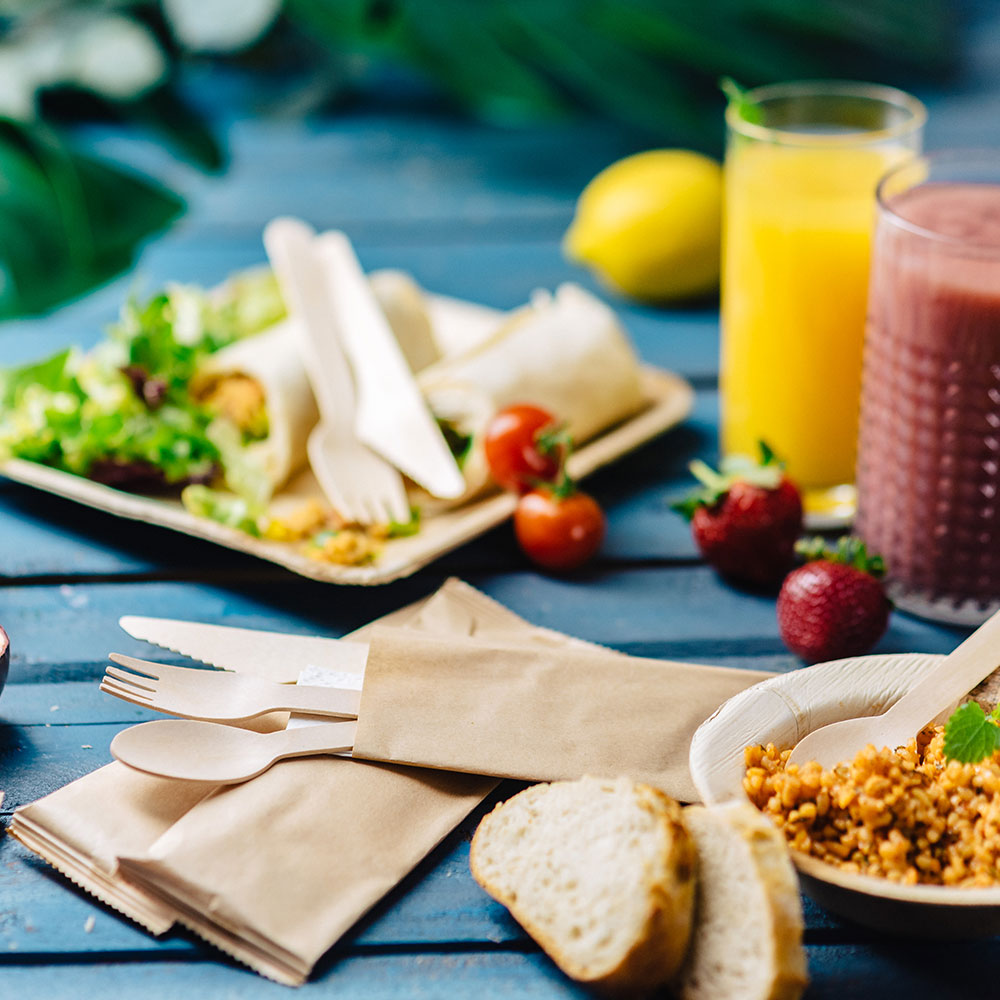 Unser Sortiment umfasst eine breite Palette an nachhaltigen Verpackungen, umweltfreundlichem Bio Mehrweggeschirr aus nachwachsenden und recycelten Rohstoffen.