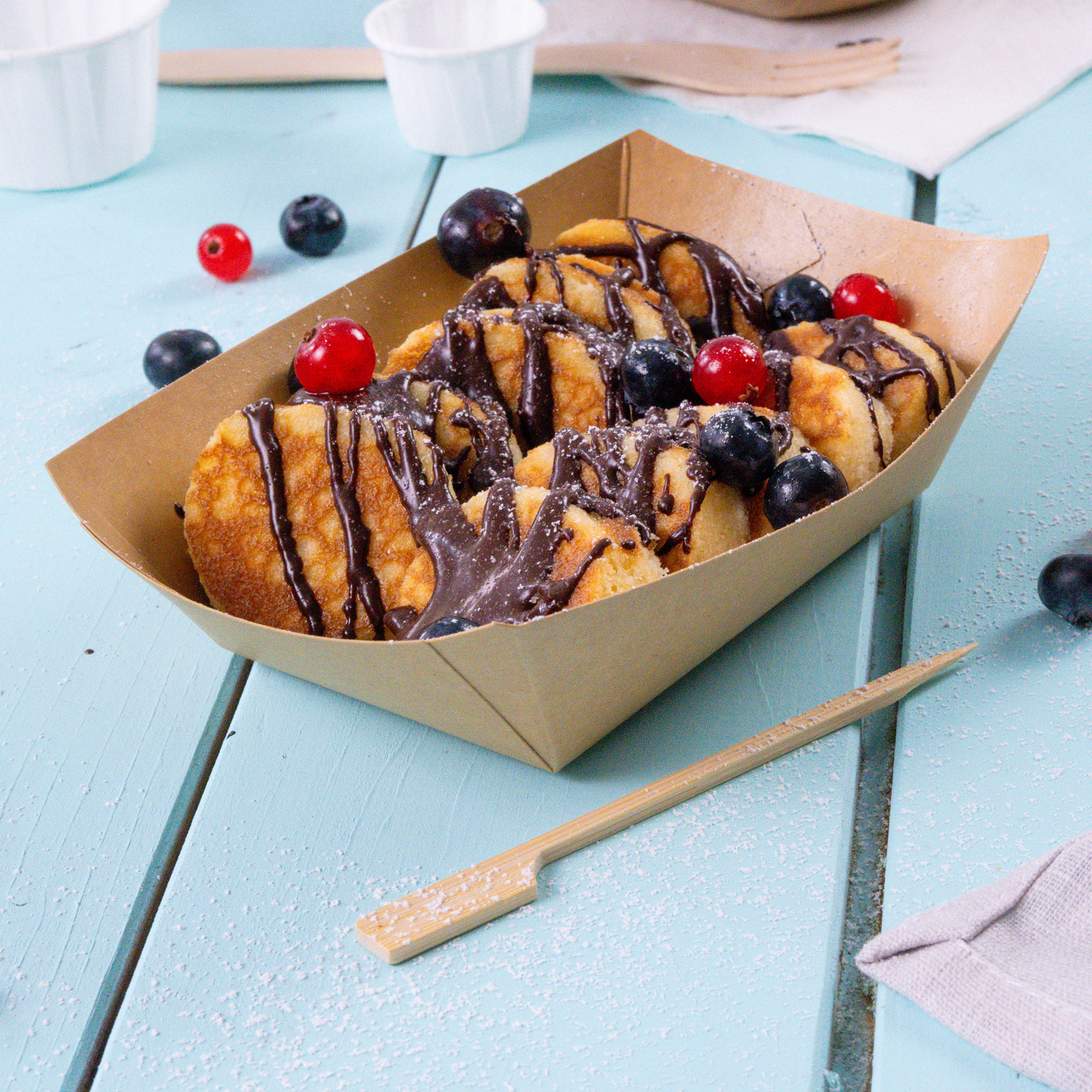 Aufgrund der biologischen und unbedenklichen Innenbeschichtung können die Kartonboote auch für stark saucenhaltige und fettige Speisen problemlos verwendet werden.