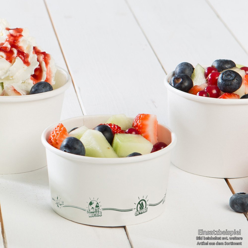 BIOZOYG Umweltfreundliche Universal Karton Einwegschalen für Eis, Dessert, Fingerfood, Vorspeisen, Snacks I Speisebecher weiß I runde Einwegbecher kompostierbar