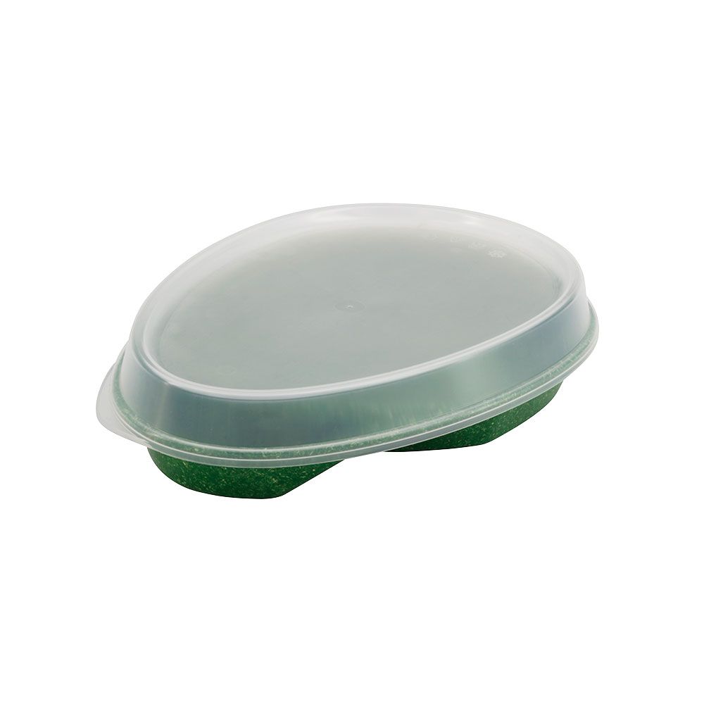 Mehrweg-Menü-Teller 27,5 x 20 x 3,5 cm, 2 Kammern, tropfenförmig, dunkelgrün + Deckel
