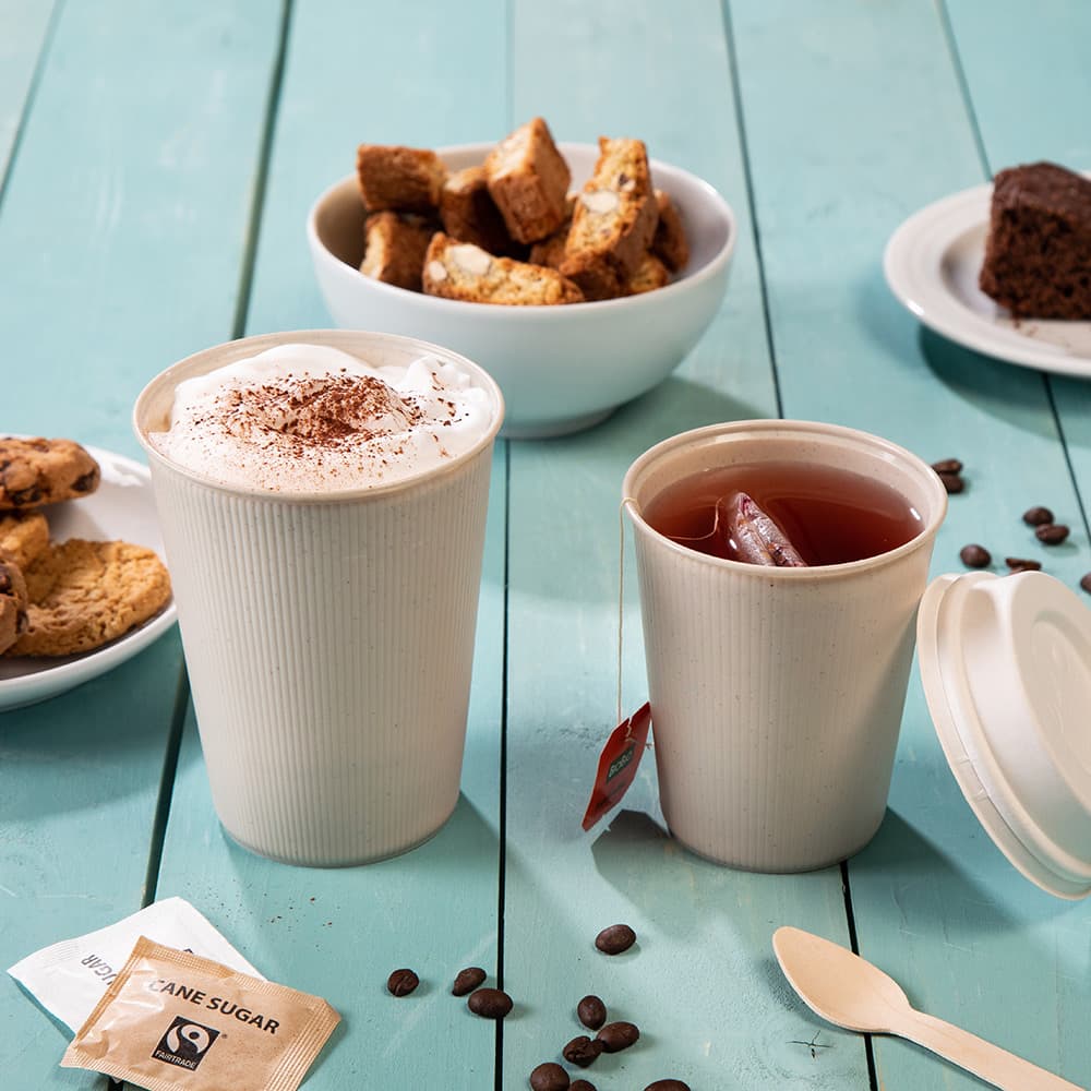 BIOZOYG Mehrweg-Riffelbecher Heißgetränke-Becher zum Mitnehmen I Teebecher für unterwegs I Trinkbecher spülmaschinenfest I Becher für Glühwein I Kaffeebecher-to-go creme-weiß