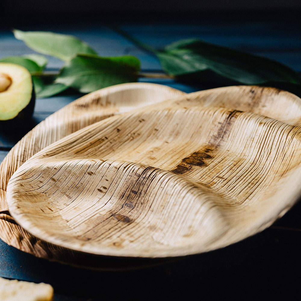 - UMWELTFREUNDLICHES GESCHIRR aus den Blättern der Betelnusspalme - jeder Einmal Teller mit Einteilung hat eine individuelle Maserung und wertet als Snackschale Teller Unikat jede Tischdekoration auf