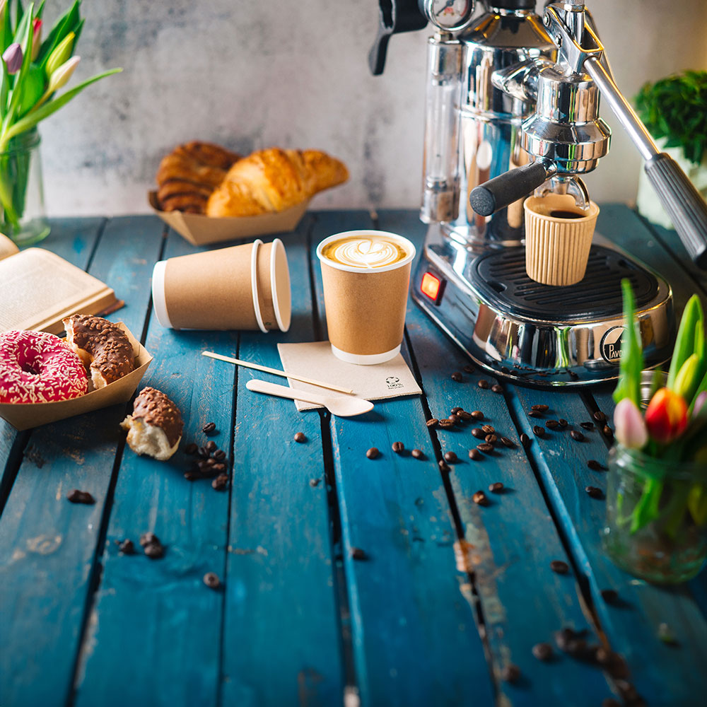 - Zubehör: Passende Becher-Deckel, Umrührstäbchen, Löffel, Servietten u.v.m. sind ebenfalls in unserem Sortiment erhältlich