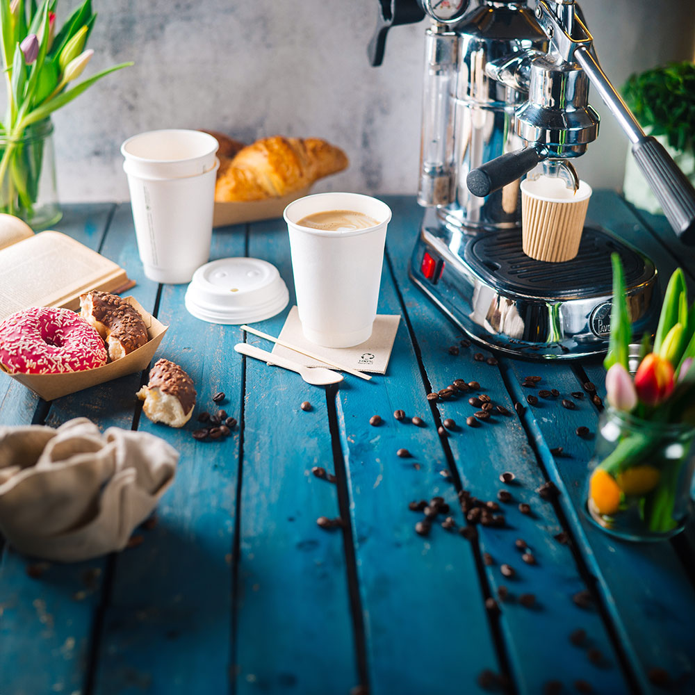 - Zubehör: Passende Becher-Deckel, Umrührstäbchen, Löffel, Servietten u.v.m. sind ebenfalls in unserem Sortiment erhältlich