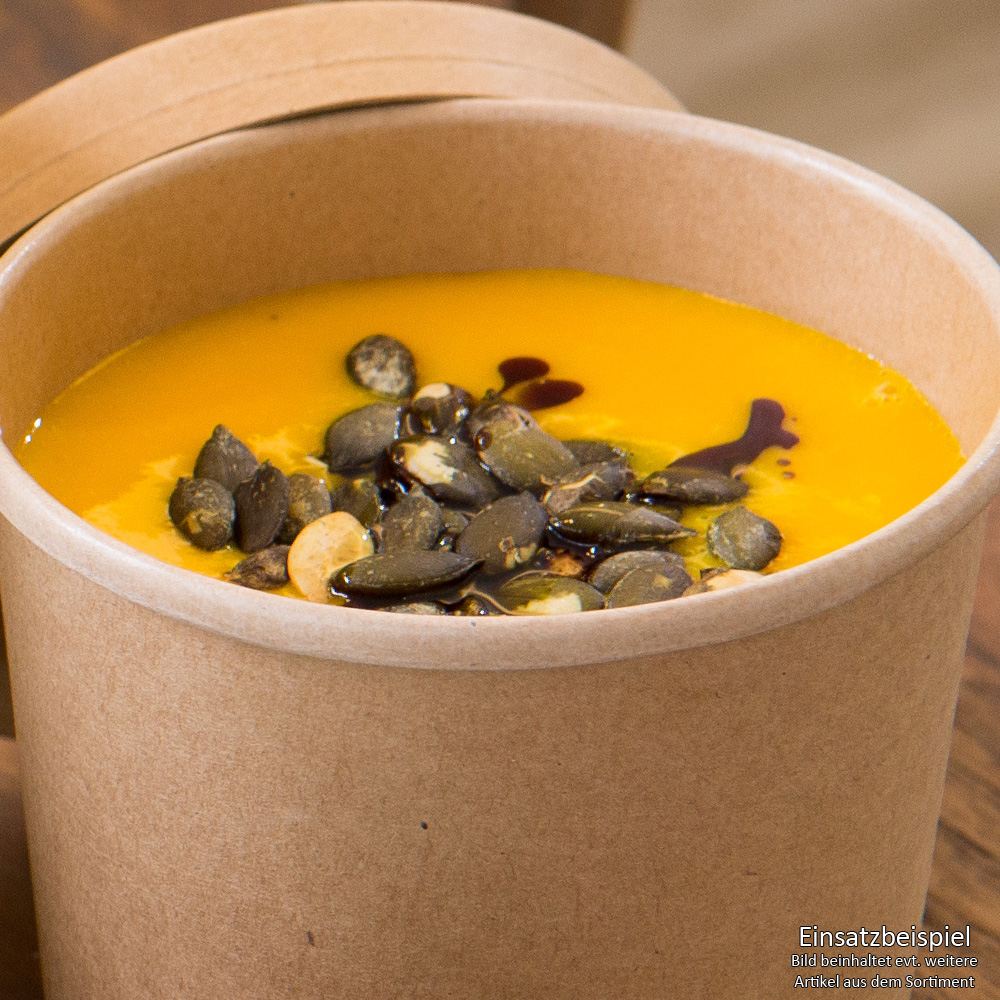 - VIELSEITIG: Die To Go Bio Becher Einweg sind für den Einsatz in der Take Away / To Go Gastronomie perfekt für heiße und kalte Speisen wie zB Suppen, Eintöpfe, Salat und Eis geeignet