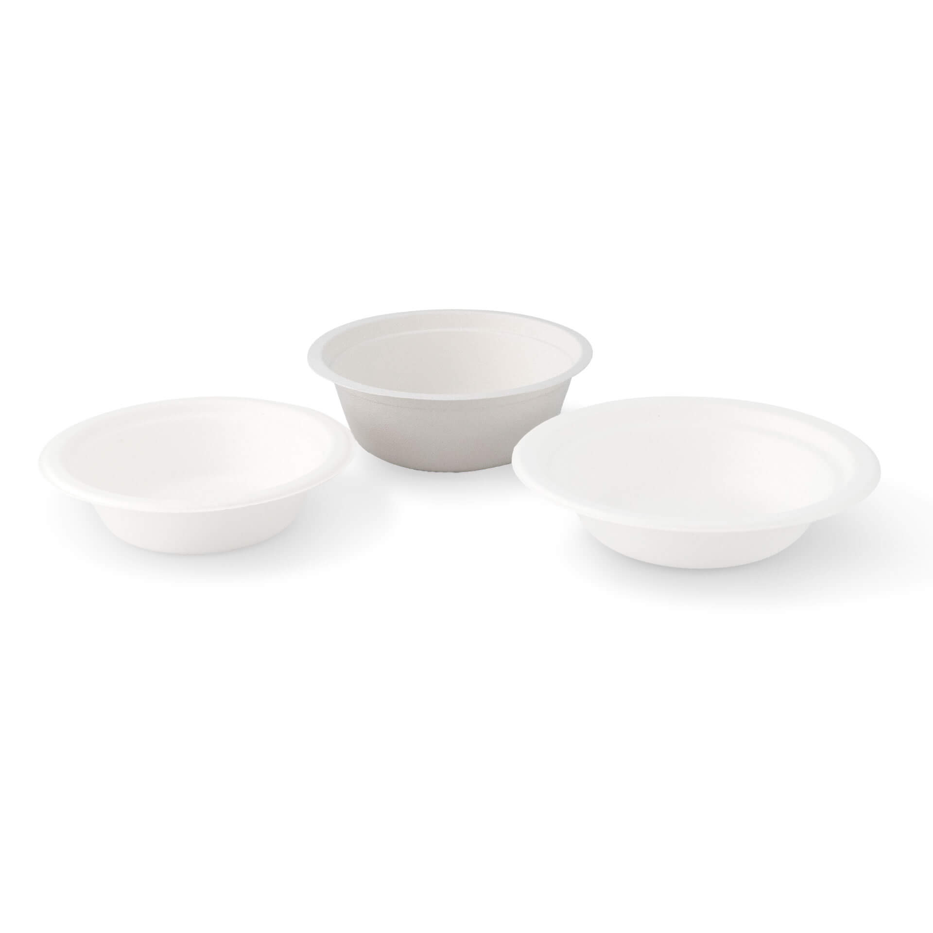 - Im Set sind weiße, unbedruckte, umweltfreundlich gebleichte, runde Suppenschüsseln aus Zuckerrohr