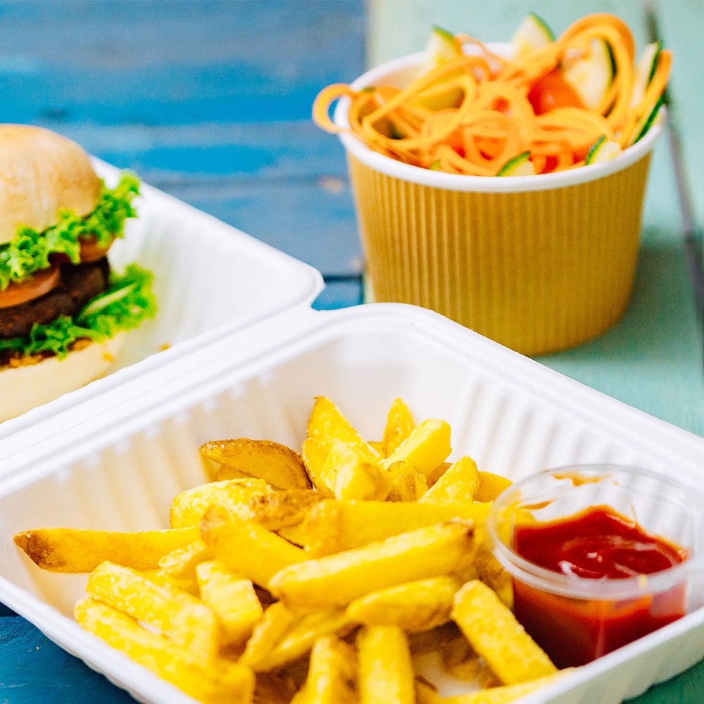- STABIL: Durch die stabile Herstellung mit einer starken Wand aus den Zuckerrohr-Restfasern halten die To Go Schalen auch bei einer etwas längeren Lagerung mit dem Burger stand