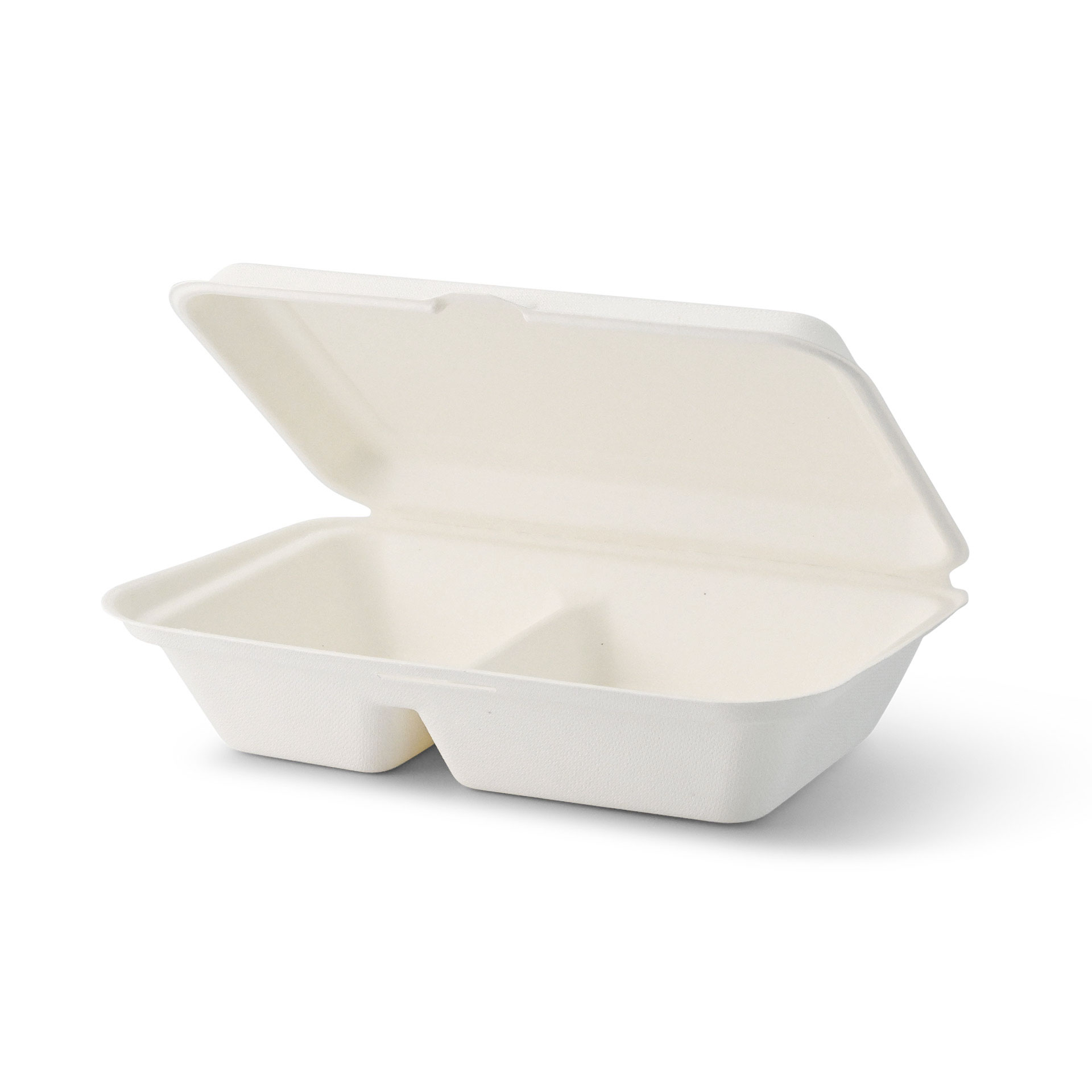 Zuckerrohr-Menü-Klappdeckel-Behälter 25 x 16,5 x 6,1 cm, 2 Kammern, rechteckig