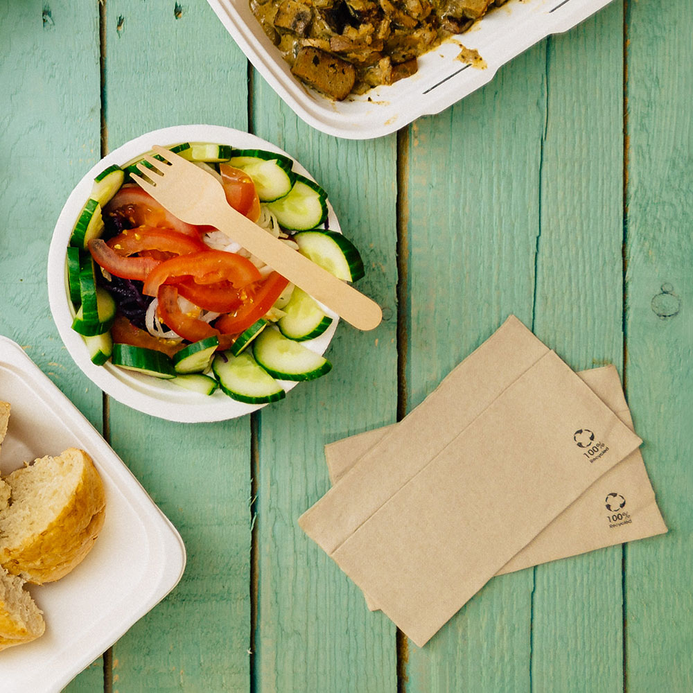 BIOZOYG umweltfreundliche Servietten 33x33 1/8 Falz aus 100 % Recycling Papier ungebleicht ! Umweltschonende, biologisch abbaubare Produkte, zu denen unsere Recyclingservietten gehören, sind heute nicht mehr wegzudenken aus dem To Go Zubehör im Event Catering Bedarf - dem Imbiss- und Partyzubehör - als Gastro Bedarf im Fastfood Restaurant - überall gehören die Servietten für Servietten-Spender einfach dazu. Vielseitig einsetzbar sind sie im Imbiss Bedarf als Brötchen Serviette - im Verkaufswagen Zubehör z. B.als Currywurst Serviette - in der Cafe Ausstattung als Servietten für Kuchen - im Bereich To Go nachhaltig als Servietten aus Papier zum Mitgeben, im Restaurant Zubehör als Servietten für Gastronomie - im Geschäftsbereich der Eventmanager bei Fingerfood Präsentation oder beim Barzubehör als Hotel Serviette einfarbig uvm. Im Picknick Korb ist man mit den Camping Servietten auf alles vorbereitet und im Sortiment der Camping Ausstattung Wohnwagen als Küchenrolle Ersatz - beim BBQ Zubehör für die nächste Grillparty - oder im Rucksack der Backpacker Ausrüstung - überall sind unsere Servietten Recyclingpapier für unterwegs als sinnvolle Reise Begleiter beliebt. Umweltfreundliches Material mit FSC-Zertifizierung: FSC steht für "Forest Stewardship Council" und ist ein internationales Zertifizierungssystem für verantwortungsvolle und nachhaltige Waldwirtschaft. BIOZOYG Wählen Sie als verantwortungsbewusster Mensch biologisch abbaubare Alternativen und vertrauen Sie auf unsere direkte Zusammenarbeit mit den Herstellern und eine hohe Produktqualität. Unser Sortiment umfasst eine breite Palette an nachhaltigen Verpackungen, umweltfreundlichem Bio Mehrweggeschirr aus nachwachsenden und recycelten Rohstoffen.