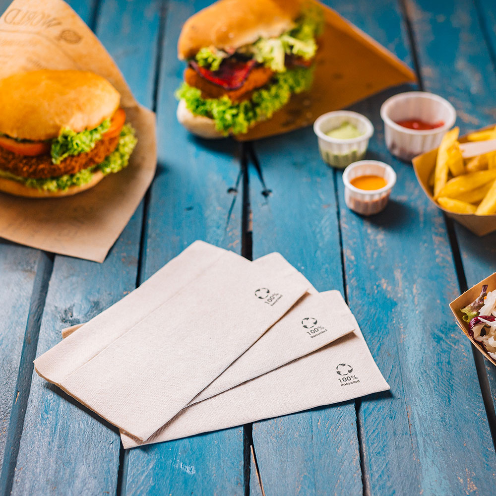 - GASTRO-SERVIETTEN 33x33 1/8 Falz in der Großpackung sind die perfekten Recycling-Servietten für Serviettenspender im Restaurant und als Imbisswagen Verkaufswagen Zubehör im Take-Away-Business